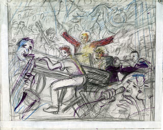 Since 2003 Greg Hildebrandt has been honored to create art for the Trans-Siberian Orchestra. For the first time, we are making available for sale his pencil sketches, inks and a few finished water colors. Most of these are preliminary concepts that Greg has created and discussed with Paul O’Neill to arrive at the finished paintings that have been published by TSO.