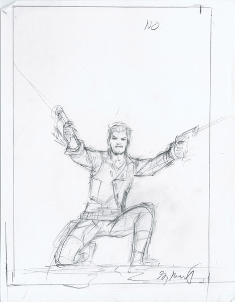 A rough sketch for the final painting. Greg will often do more than one rough when trying to plan out a piece.